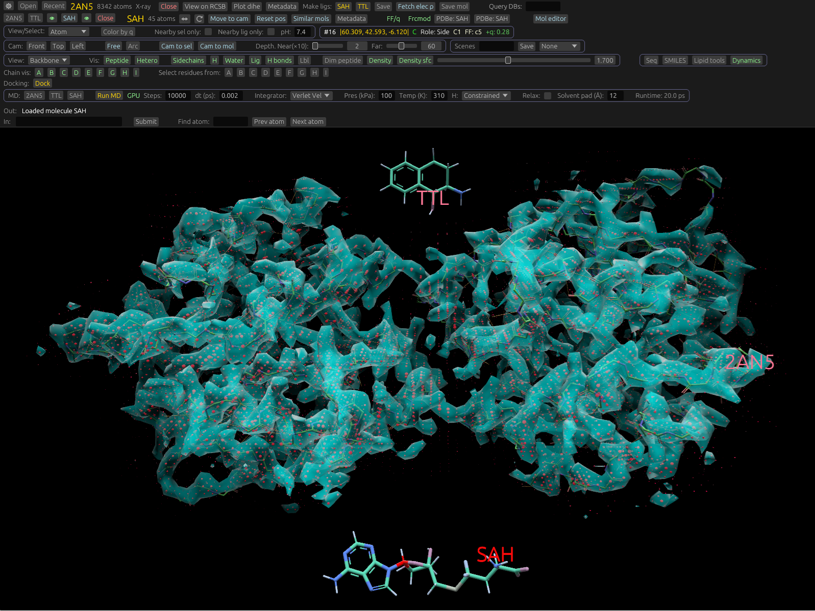 Load from PDB, PubChem and other databases. Run MD with Amber parameters, view electron density, and edit molecules. All-in-one GPU-accelerated application.