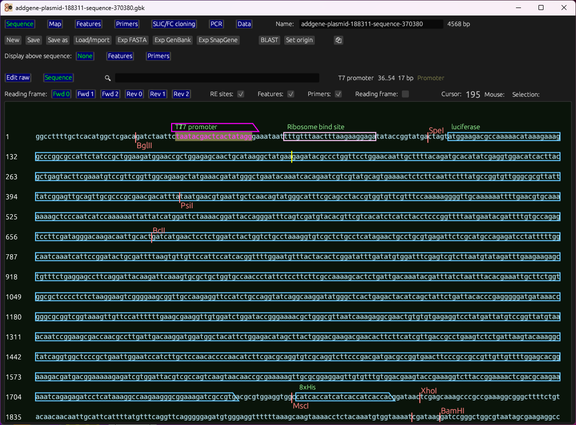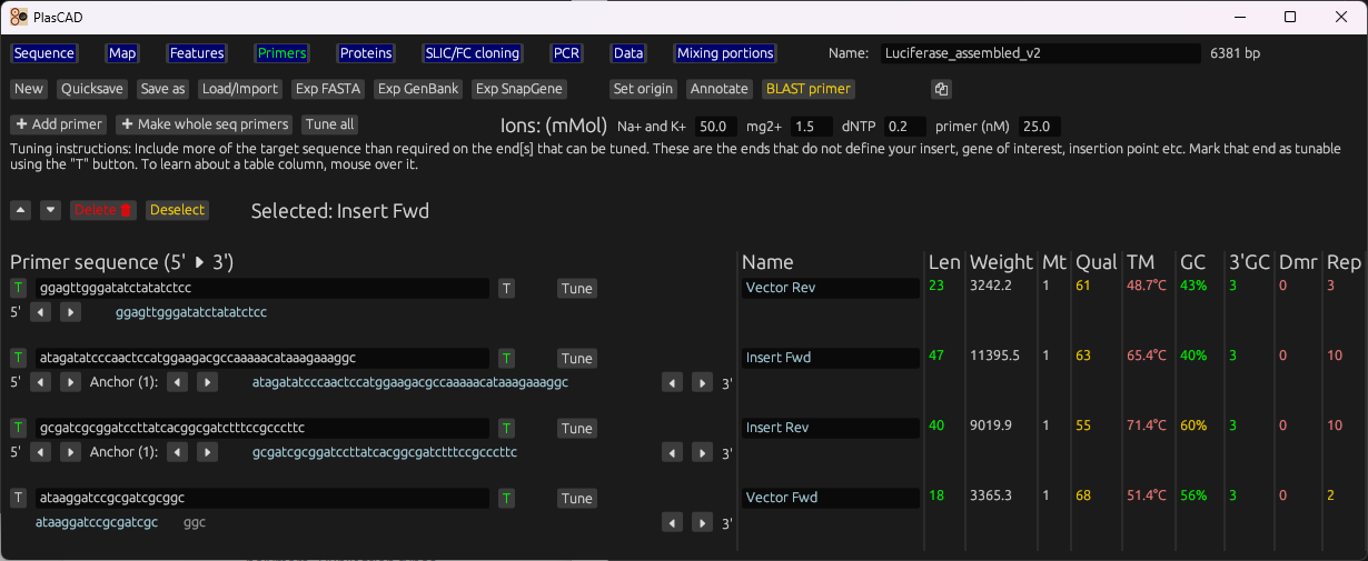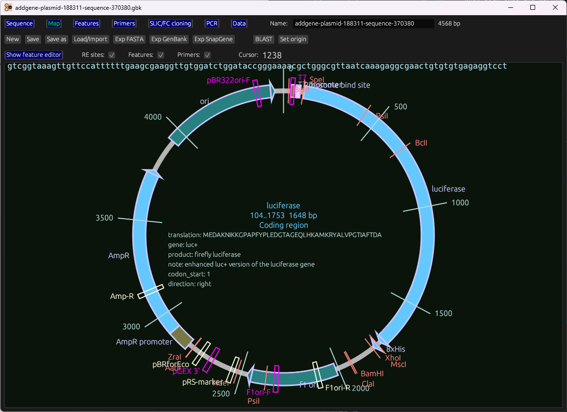 A fast desktop tool for primer tuning and cloning workflows (SLIC/FastCloning), with WYSIWYG sequence editing, circular maps, restriction analysis, and interoperability with GenBank/SnapGene/FASTA.